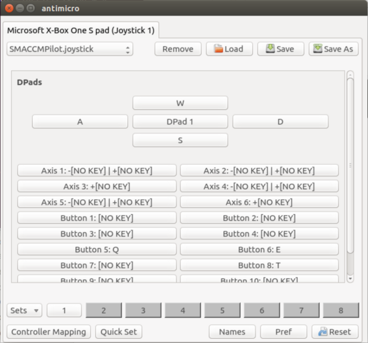 Now start up antimicro and load the following key bindings: